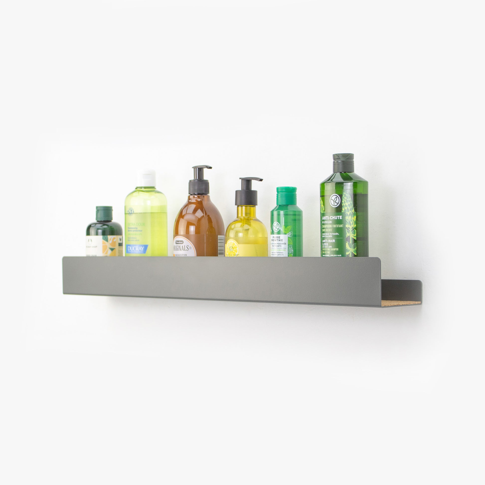 Designed with a high front bar and a cork-covered bottom, this shelf is tailor-made for holding your toiletteries securely in place. Available in two convenient sizes, our 50 cm and 60cm shelves gracefully accommodates shampoos, body lotions and guest towels and more in all their glory.