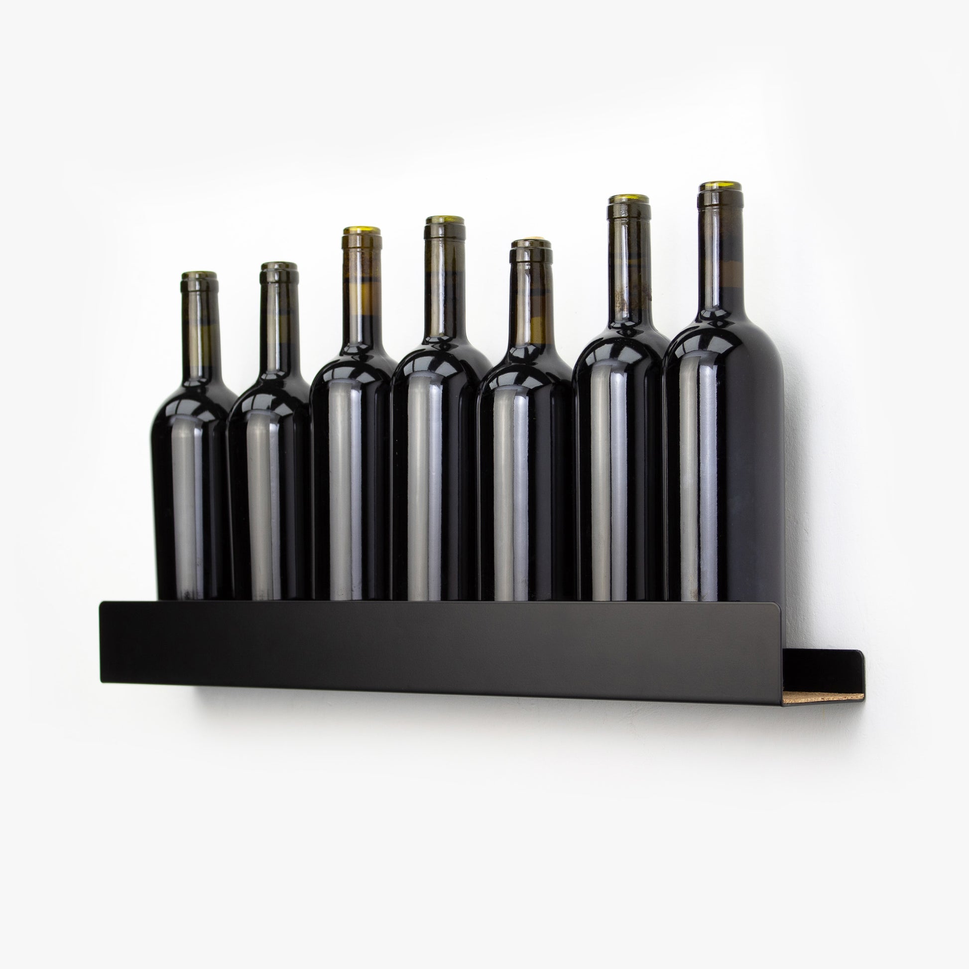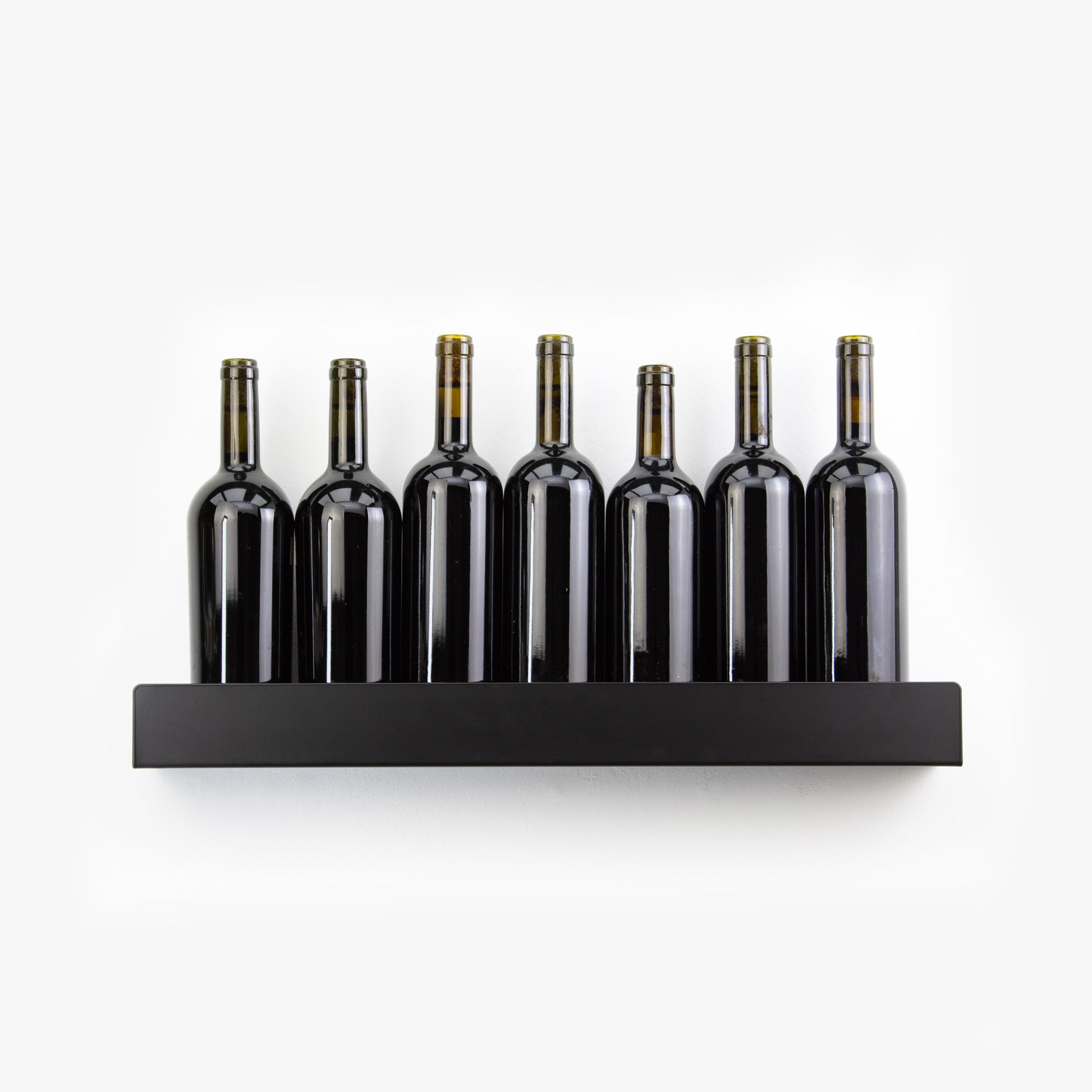 Designed with a high front bar and a cork-covered bottom, this shelf is tailor-made for holding your prized bottles securely in place. Available in two convenient sizes, our 60cm version gracefully accommodates up to 7 wine bottles, while the 50cm version elegantly displays up to 5 bottles in all their glory.