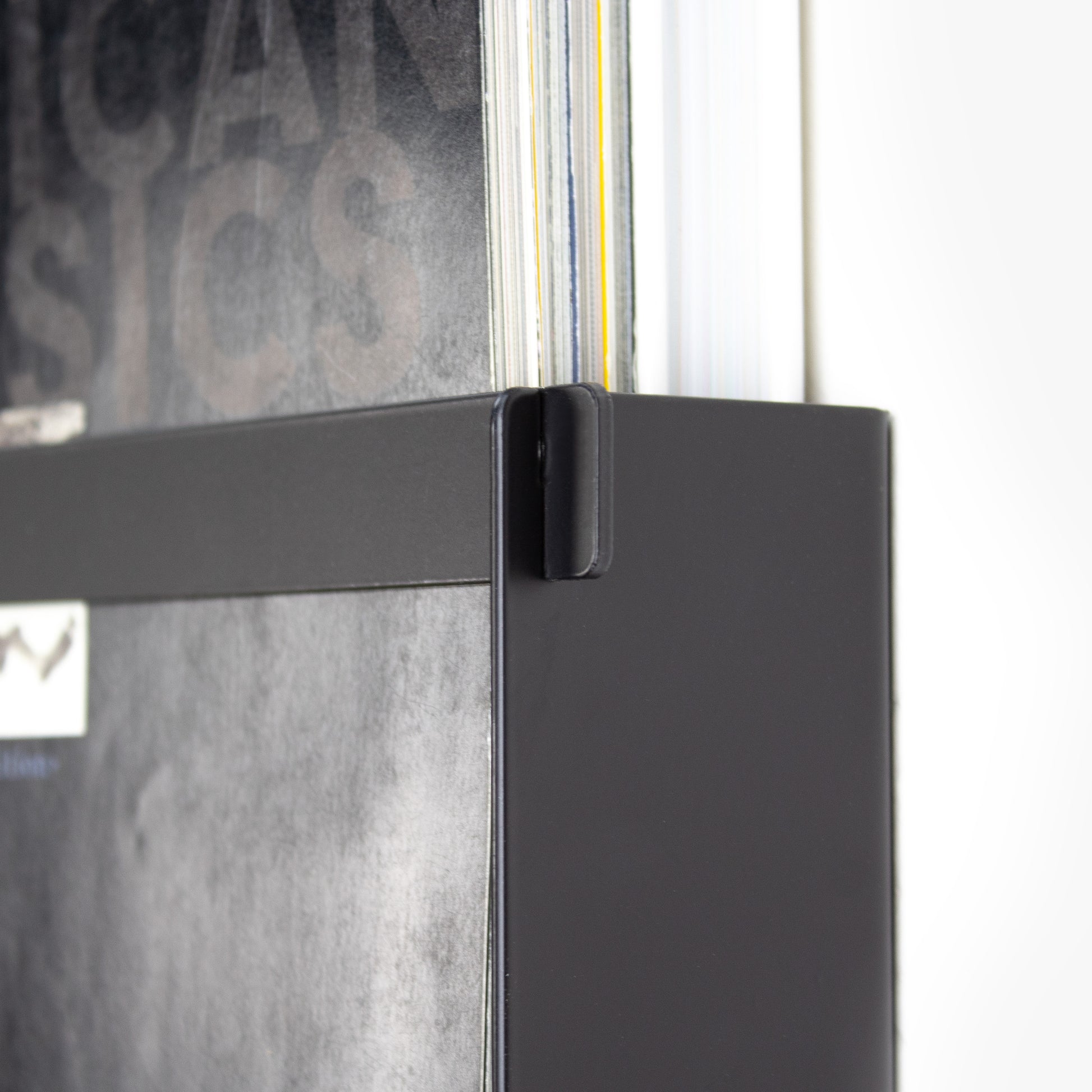 Perfectly crafted from robust sheet metal, this magazine rack comprises two seamlessly interlocking components – the main body and the front bar – resulting in a sophisticated and streamlined look that effortlessly combines organization with contemporary flair.
